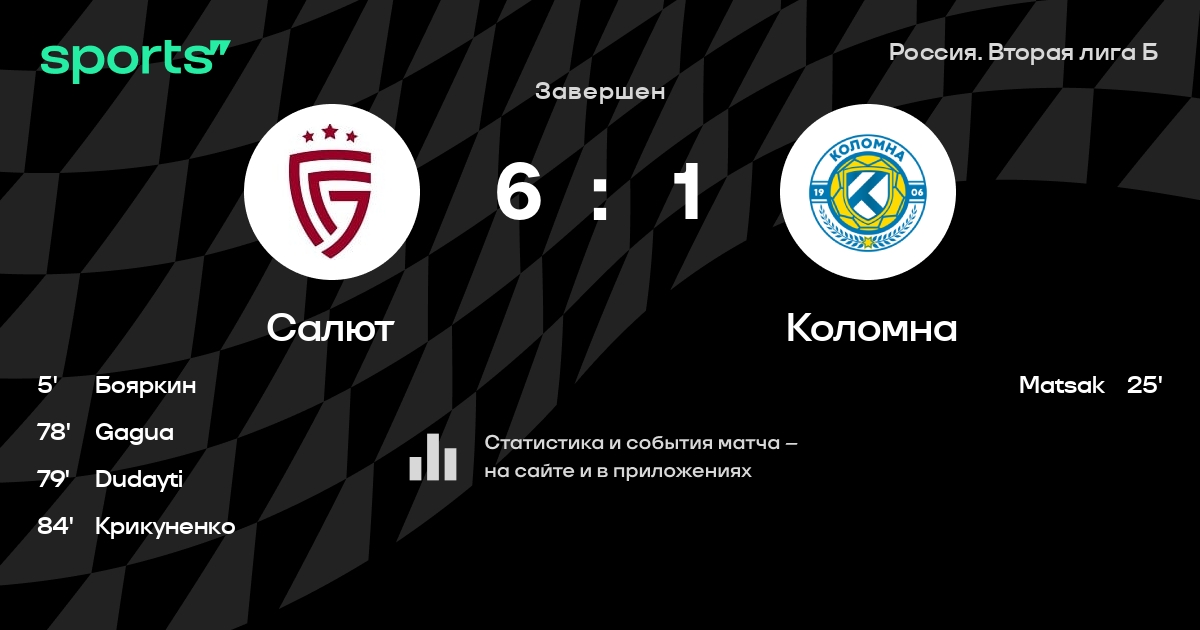 Результат прошлой игры в турнире «Вторая лига»: Салют – Сахалин 3:0. После 19 туров Салют набирает 33 очков и занимает 5 место в турнире. Лучший бомбардир команды – Николай Бояркин: он забил 9 в 13 матчах. Салют не проигрывает в 13 последних матчах в рамках турнира «Вторая лига». В 12 последних матчах в турнире «Вторая лига» Салют обязательно забивает. В последних 5 играх Салют забивает 13 голов. В последних 5 играх Салют пропускает 5 голов.