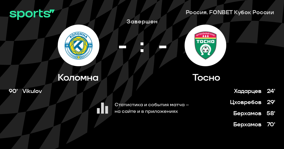 Коломна - Тосно: составы на матч