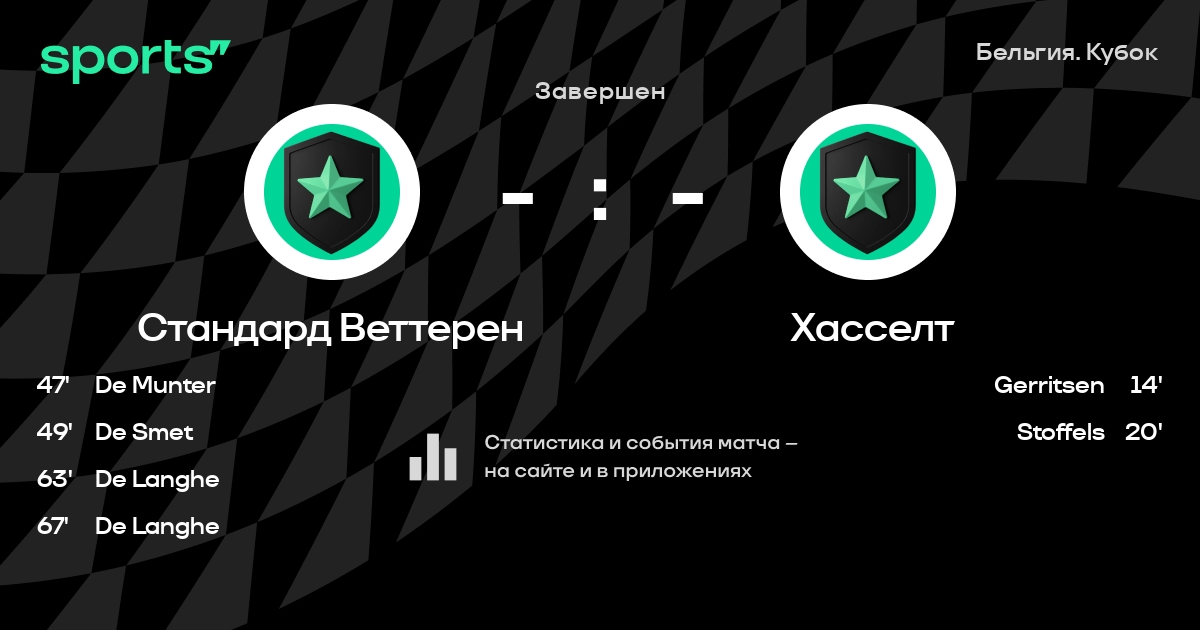 В последних 5 играх Стандард Веттерен забивает в среднем 2.00 гола за игру