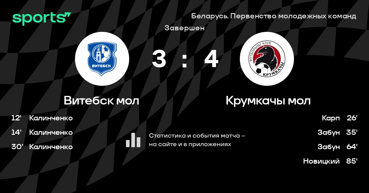 Витебск мол – Крумкачы мол: коэффициенты