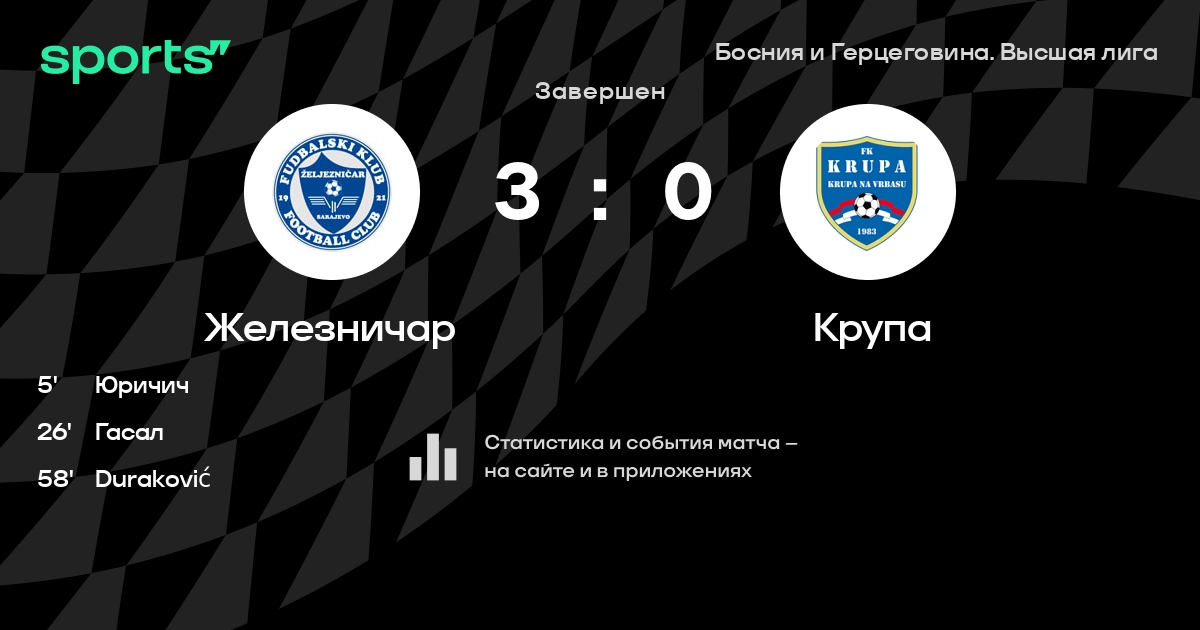 Железничар – Крупа: Крупа побеждает в 3 последних очных матчах в турнире «Босния и Герцеговина. Высшая лига»