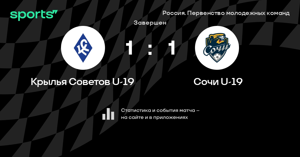 Крылья Советов U-19 – Сочи U-19: Сочи U-19 забивает в 7 последних матчах против этого соперника