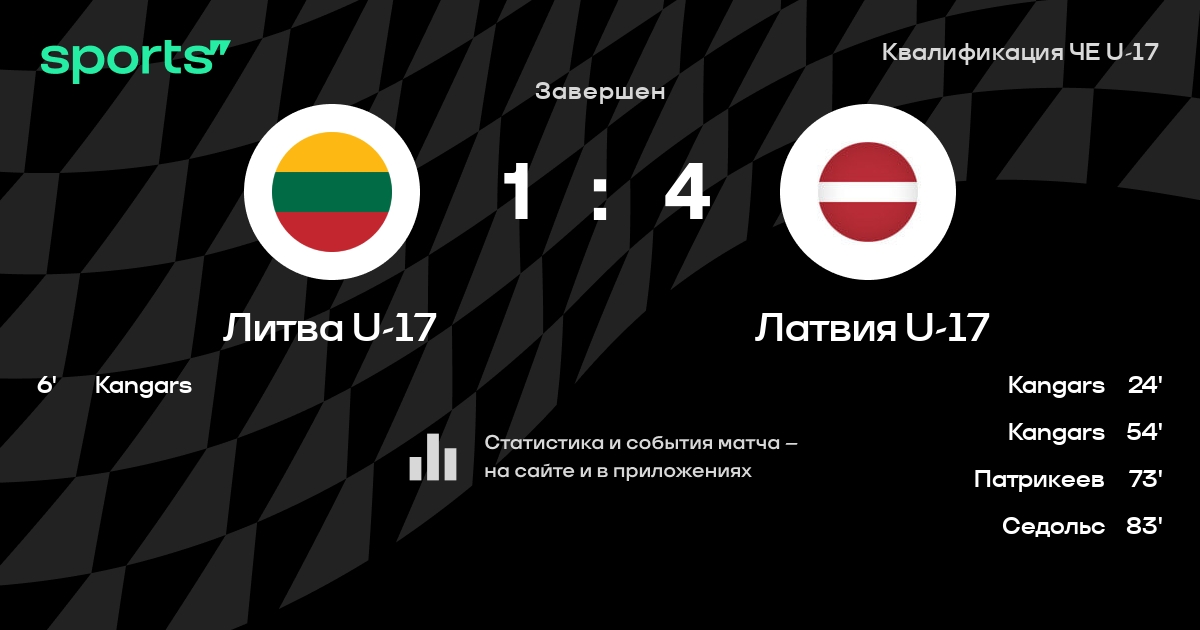 | 4 | Латвия U-17 | 3 | 0 | 1 | 2 | 2 | 4 | -2 | 1 | ||