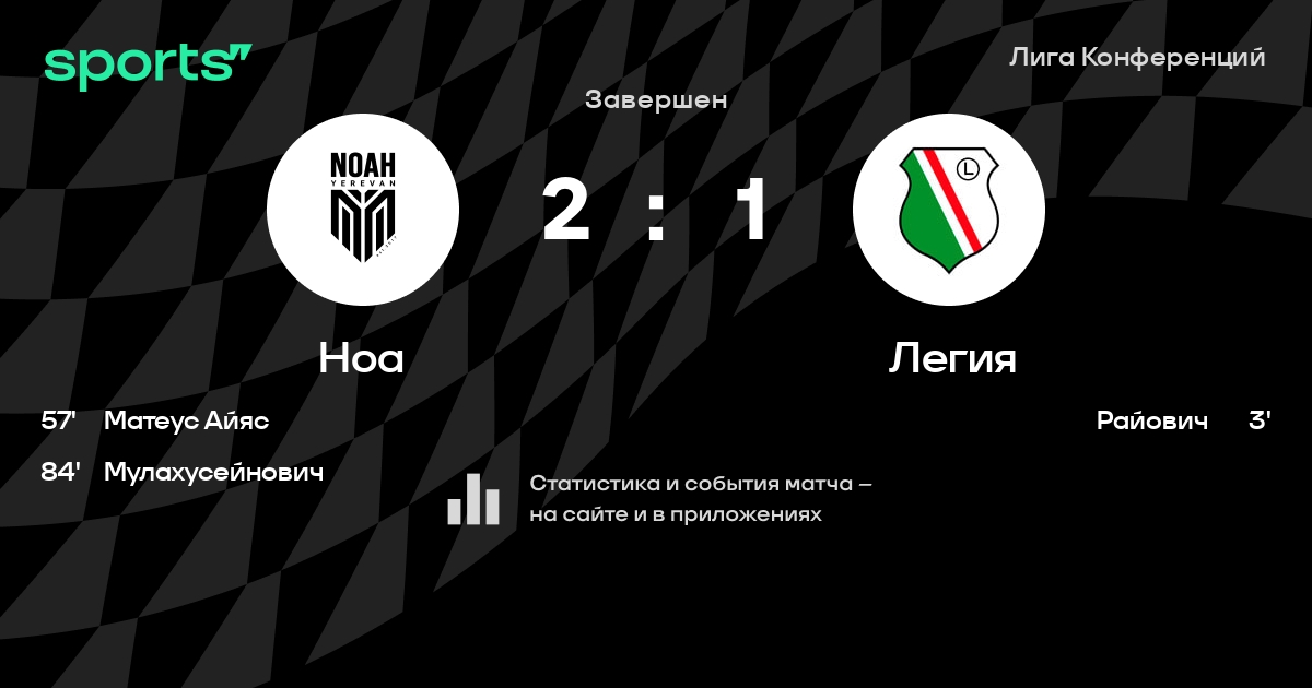 Лига конференций УЕФА: шансы Ноа и Легия на победу в матче группового этапа