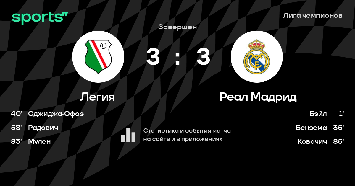 Трансляция Легия - Реал Мадрид