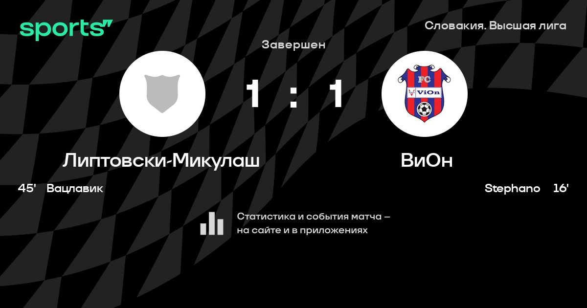 Липтовски-Микулаш – ВиОн: Липтовски-Микулаш забивает в 3 последних матчах против этого соперника