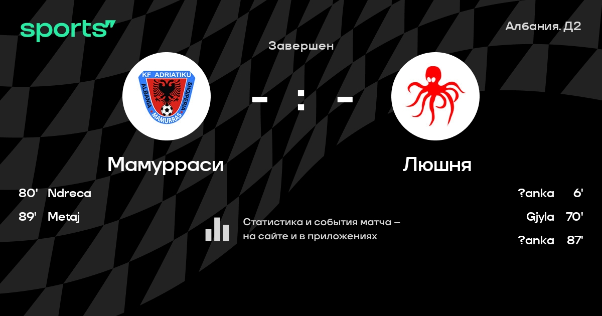 Gjergji - Malaj, Allmeta, Demaj, Sela, Baçi - Metaj, Gecaj - Gjeçi, Jushi, LamaЗапасные: Myrtaj, Shushku, Hoxha, Batusha, Kaziu, Ndreca