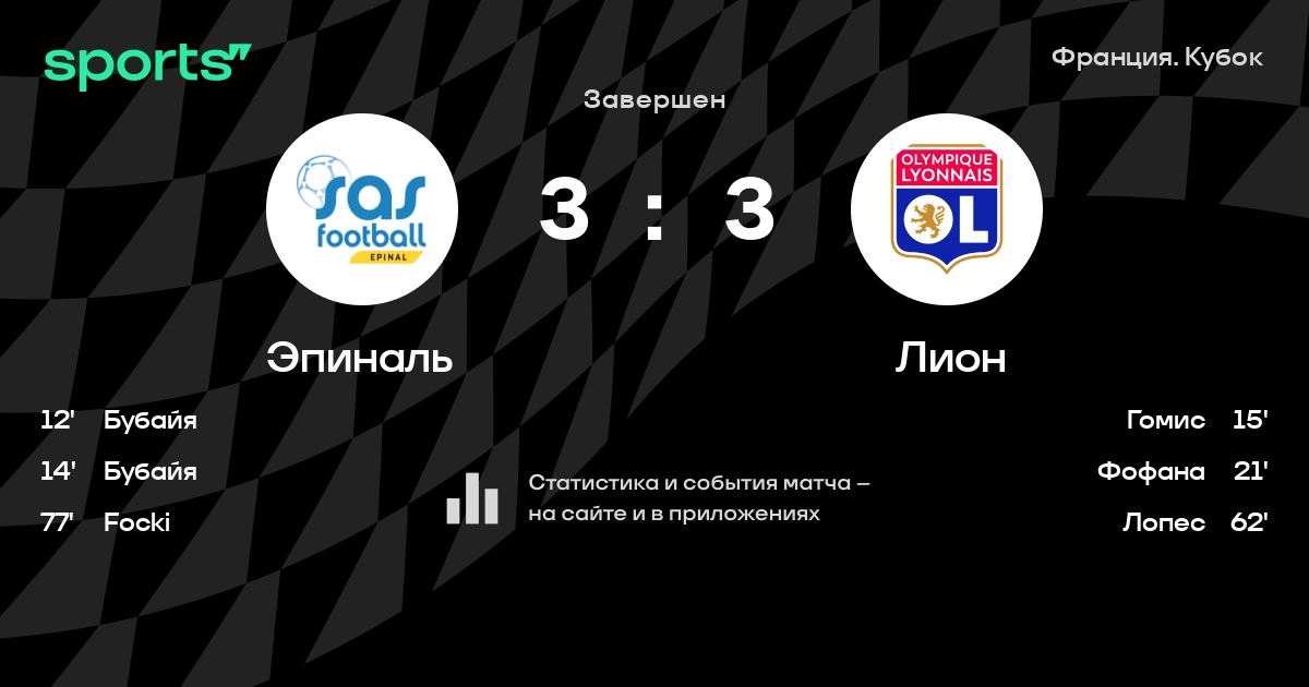 Robin - Mangan, Ротер, Крийон - Шере, Di Pinto, Focki, Бубайя, Дембеле - Chouleur, ДьедиуЗапасные: Balland, Колен, До, Пайо, Dirand, Дукуре, Закпа