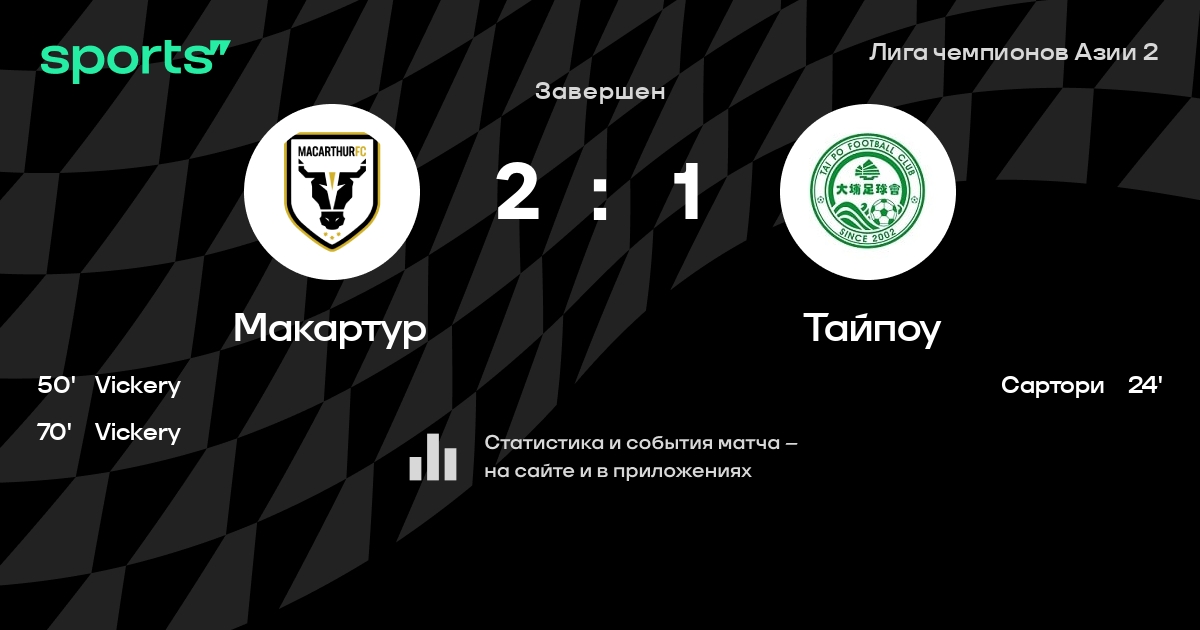Результат прошлой игры в турнире «Лига чемпионов Азии 2»: Макартур – Конган Ханой 2:1. После 4 туров Макартур набирает 7 очков и занимает 1 место в турнире. Лучший бомбардир команды – Томислав Ускок: он забил 2 в 9 матчах. Макартур не проигрывает в 3 последних матчах в рамках турнира «Лига чемпионов Азии 2». В 4 последних матчах в турнире «Лига чемпионов Азии 2» Макартур обязательно забивает. В последних 5 играх Макартур забивает 6 голов. В последних 5 играх Макартур пропускает 5 голов.