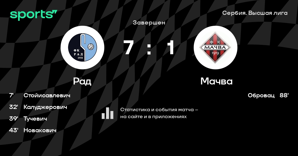 Рад – Мачва: Рад не пропускает в 1 из 7 последних матчей против этого соперника