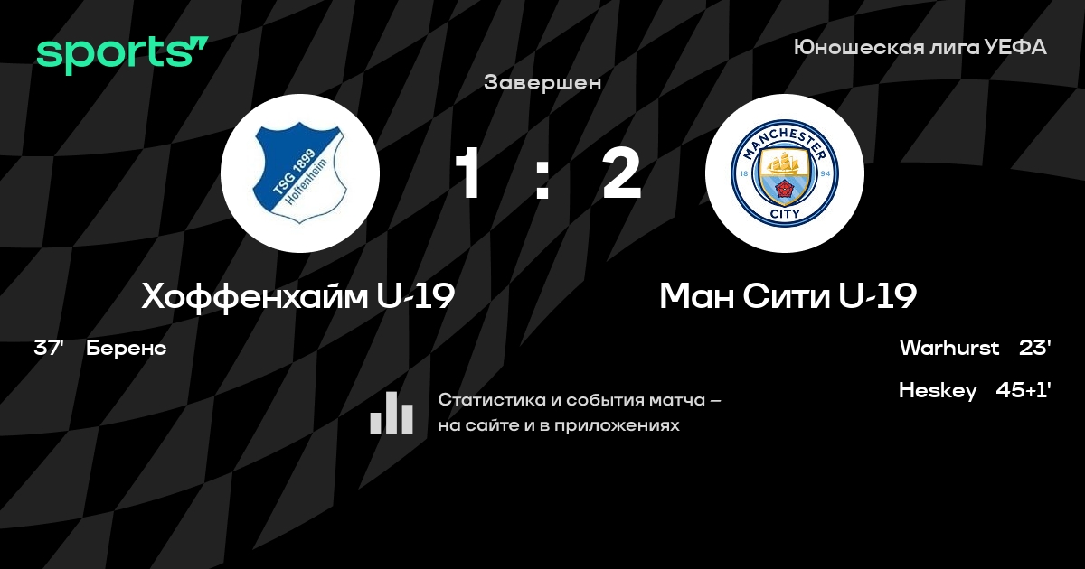 Трансляция Хоффенхайм U-19 - Ман Сити U-19