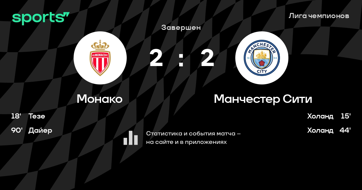 Лига чемпионов: шансы «Монако» и «Манчестер Сити» на победу в матче 2 тура