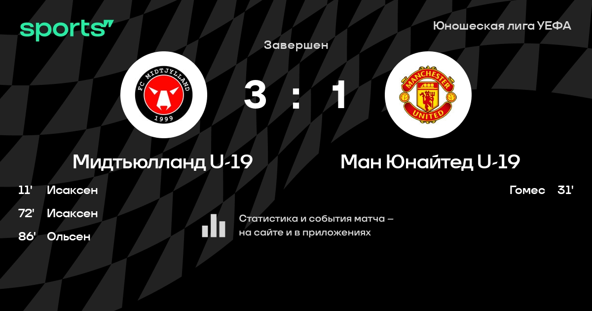 Трансляция Мидтьюлланд U-19 - Ман Юнайтед U-19