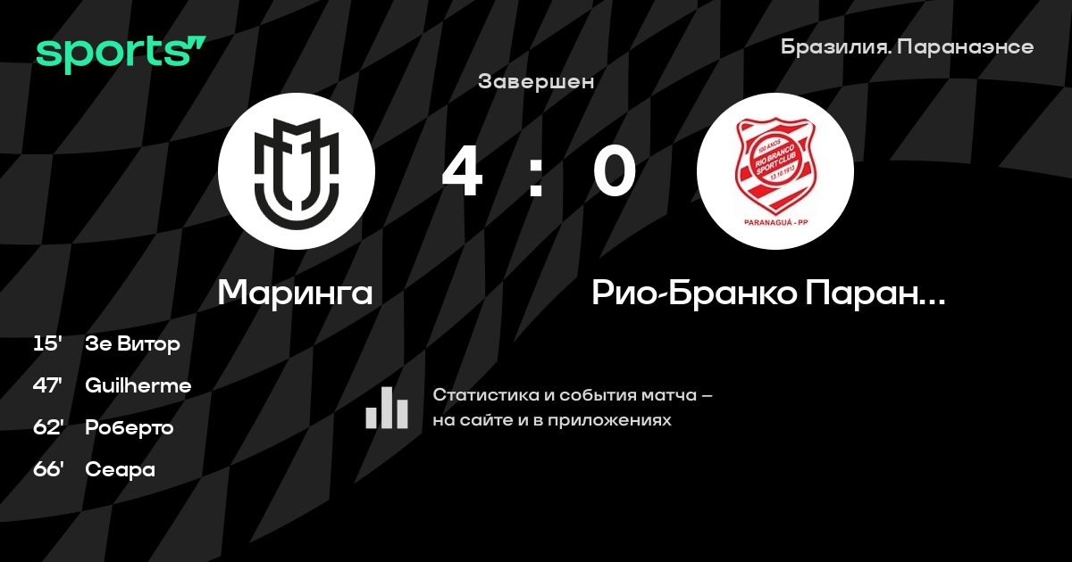 Результат прошлой игры в турнире «Лига Паранаэнсе»: Рио-Бранко Паранагуа – Сианорти 2:0. После 5 туров Рио-Бранко Паранагуа набирает 6 очков и занимает 9 место в турнире. Лучший бомбардир команды – Caio Vieira: он забил 1 в 1 матчах. В последних 5 играх Рио-Бранко Паранагуа забивает 7 голов. В последних 5 играх Рио-Бранко Паранагуа пропускает 9 голов.