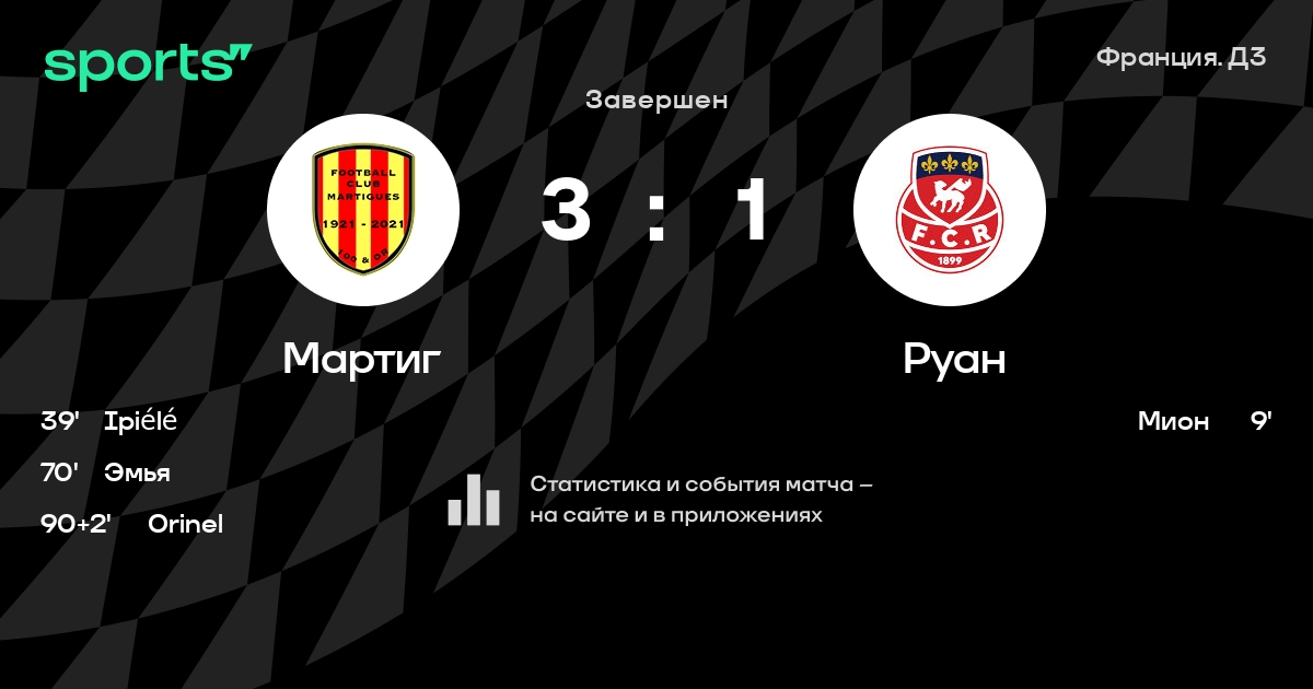 Мартиг – Руан: Руан не пропускает в 5 последних матчах против этого соперника