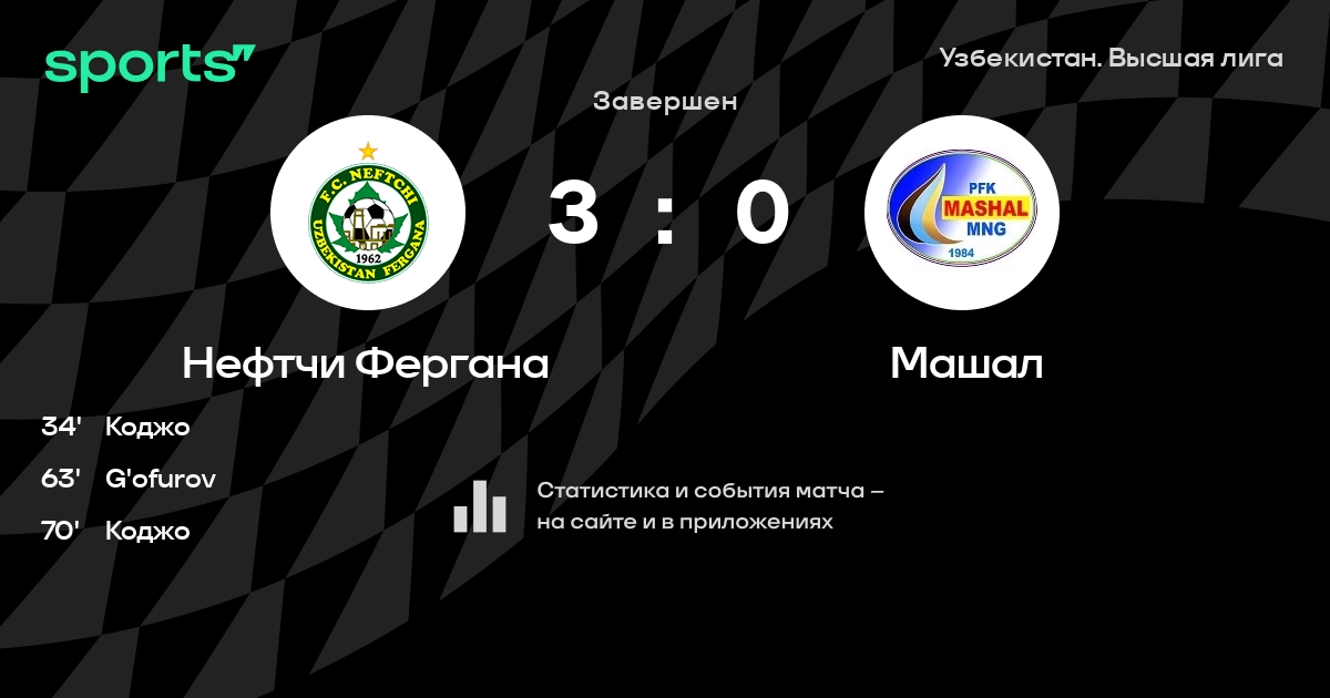 Нефтчи Фергана – Машал: Машал забивает в 7 последних матчах против этого соперника