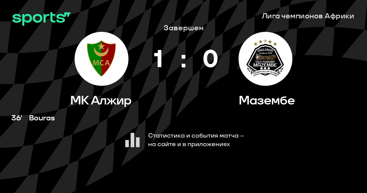 Результат прошлой игры в турнире «Лига чемпионов Африки»: Янг Эфриканс – Мазембе 3:1. После 4 туров Мазембе набирает 2 очков и занимает 4 место в турнире. Лучший бомбардир команды – O. Kabwit: он забил 2 в 6 матчах. Мазембе не может выиграть в 4 последних матчах в рамках турнира «Лига чемпионов Африки». В 3 последних матчах в турнире «Лига чемпионов Африки» Мазембе обязательно забивает. Мазембе пропускает в 3 последних матчах в турнире «Лига чемпионов Африки». В последних 5 играх Мазембе забивает 5 голов. В последних 5 играх Мазембе пропускает 7 голов.