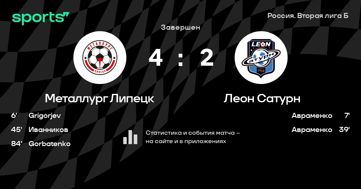 Металлург Липецк – Леон Сатурн: коэффициенты