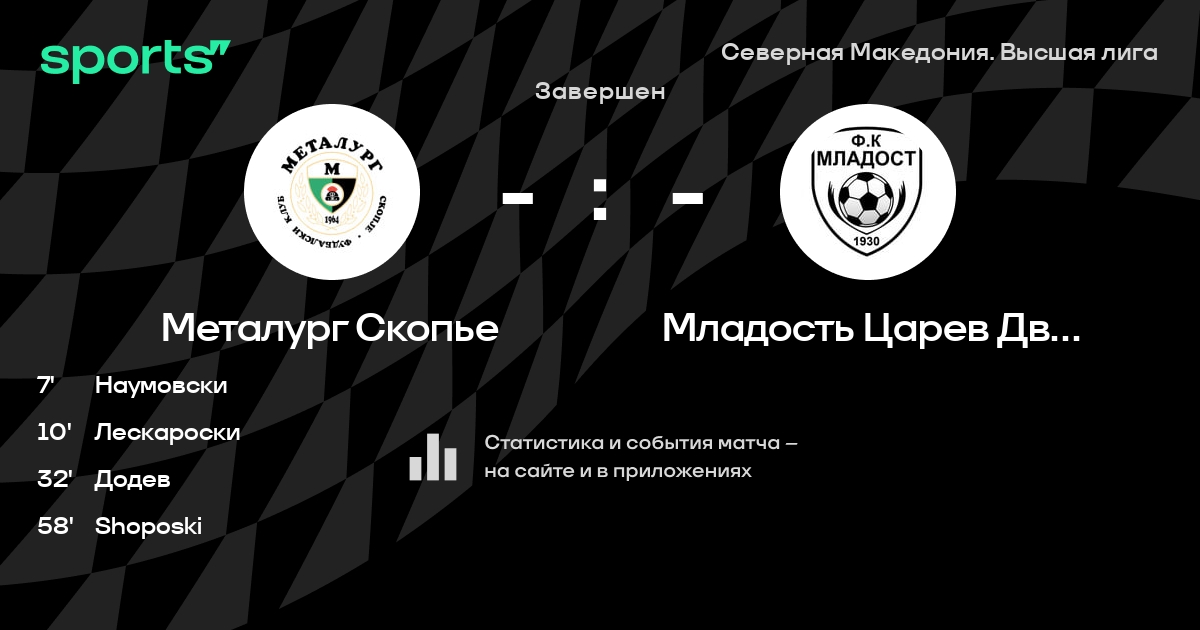 Илич - Лескароски, Митрев, Асани, Криваньева, Тодороски - Karanfilovski, Наумовски, Shoposki - Стояновски, Додев