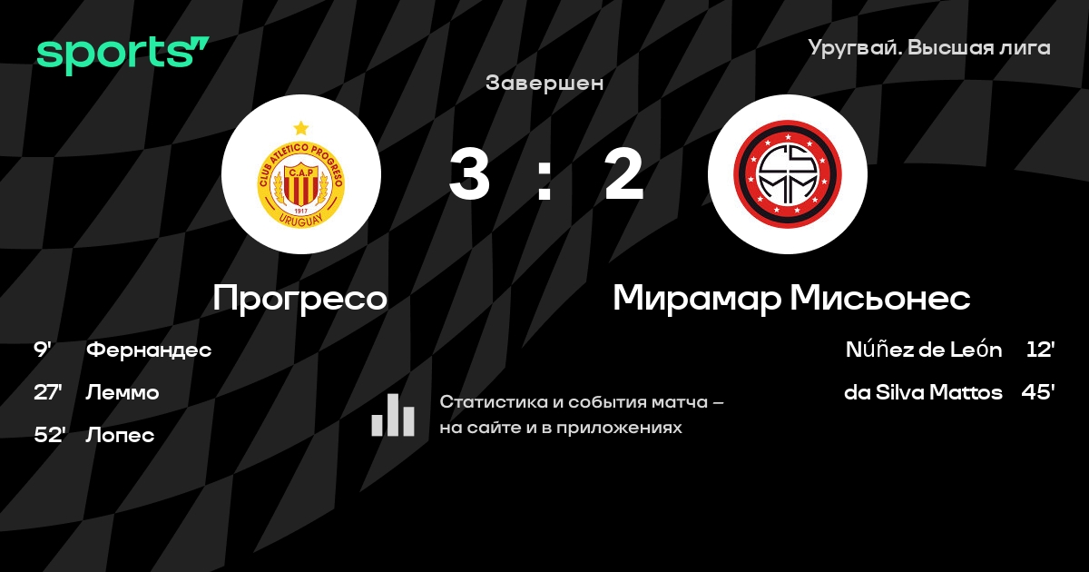Результат прошлой игры в турнире «Примера»: Бостон Ривер – Прогресо 2:1. После 15 туров Прогресо набирает 15 очков и занимает 11 место в турнире. Лучший бомбардир команды – Николас Фернандес: он забил 3 в 25 матчах. В 5 последних матчах в турнире «Примера» Прогресо обязательно забивает. В последних 5 играх Прогресо забивает 5 голов. В последних 5 играх Прогресо пропускает 9 голов.