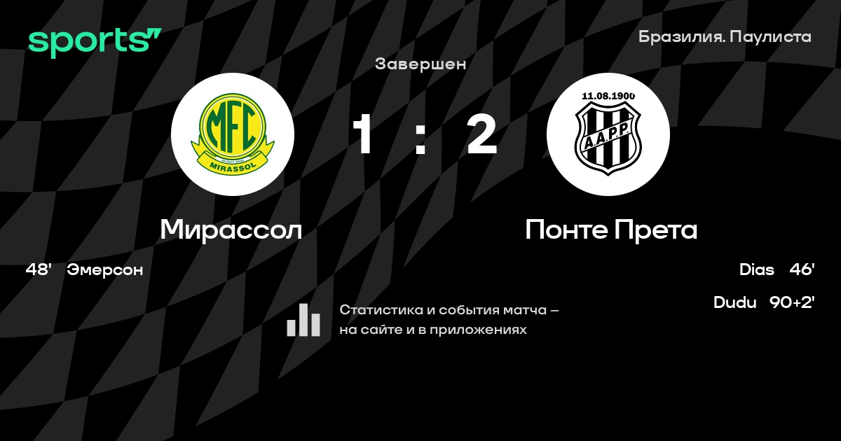 Мирассол – Понте Прета: Понте Прета не проигрывает в 7 из 9 последних матчей против этого соперника в турнире «Лига Паулиста»
