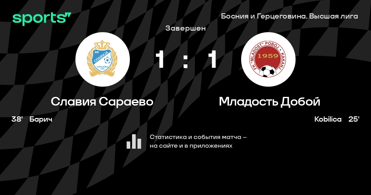 Трансляция Славия Сараево - Младость Добой
