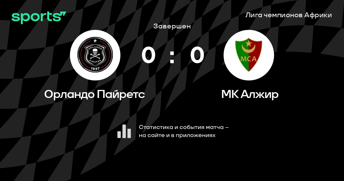 Результат прошлой игры в турнире «Лига чемпионов Африки»: МК Алжир – Орландо Пайретс 0:1. Орландо Пайретс побеждает в 4 последних матчах в рамках турнира «Лига чемпионов Африки». В 5 последних матчах в турнире «Лига чемпионов Африки» Орландо Пайретс обязательно забивает. В последних 5 играх Орландо Пайретс забивает 5 голов. В последних 5 играх Орландо Пайретс пропускает 1 голов.