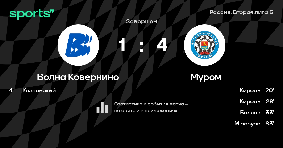 В последних 5 играх Волна Ковернино забивает в среднем 1.80 гола за игру
