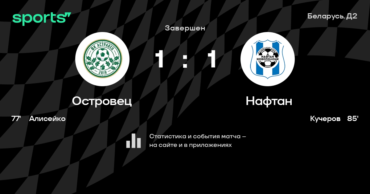 В последних 5 играх Островец забивает в среднем 1.00 гола за игру