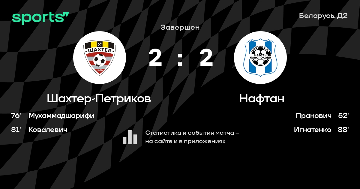 Шахтер-Петриков – Нафтан: Шахтер-Петриков забивает в 4 последних матчах против этого соперника