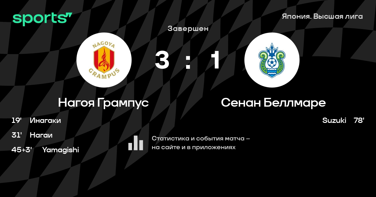 Результат прошлой игры в турнире «Джей-лига 1»: Фаджиано Окаяма – Нагоя Грампус 0:1. После 29 туров Нагоя Грампус набирает 32 очков и занимает 15 место в турнире. Лучший бомбардир команды – Се Инагаки: он забил 9 в 33 матчах. В 5 последних матчах в турнире «Джей-лига 1» Нагоя Грампус обязательно забивает. В последних 5 играх Нагоя Грампус забивает 8 голов. В последних 5 играх Нагоя Грампус пропускает 11 голов.