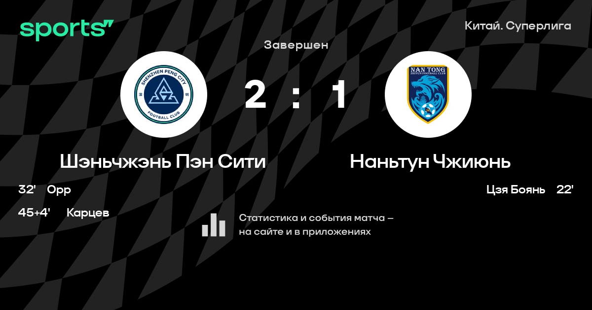 Результат прошлой игры в турнире «Суперлига»: Шанхай Шеньхуа – Шэньчжэнь Пэн Сити 2:2. После 29 туров Шэньчжэнь Пэн Сити набирает 26 очков и занимает 15 место в турнире. Лучший бомбардир команды – Эду Гарсия: он забил 9 в 22 матчах. Шэньчжэнь Пэн Сити не может выиграть в 8 последних матчах в рамках турнира «Суперлига». В последних 5 играх Шэньчжэнь Пэн Сити забивает 5 голов. В последних 5 играх Шэньчжэнь Пэн Сити пропускает 11 голов.
