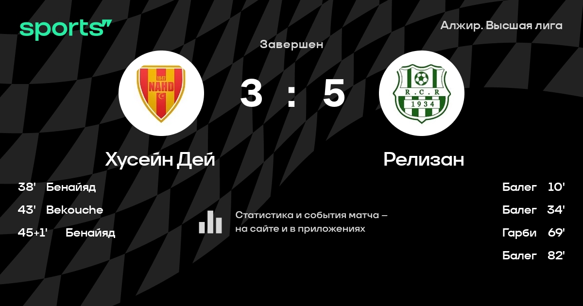 Хусейн Дей – Релизан: Хусейн Дей не проигрывает в 5 из 6 последних матчей против этого соперника