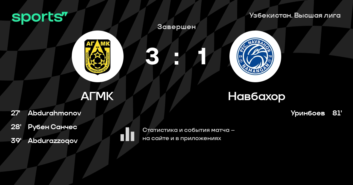 Результат прошлой игры в турнире «ПФЛ»: Шуртан – АГМК 4:3. После 27 туров АГМК набирает 41 очков и занимает 6 место в турнире. Лучший бомбардир команды – Хуршид Гийосов: он забил 10 в 30 матчах. АГМК не может выиграть в 5 последних матчах в рамках турнира «ПФЛ». АГМК пропускает в 9 последних матчах в турнире «ПФЛ». В последних 5 играх АГМК забивает 4 голов. В последних 5 играх АГМК пропускает 8 голов.