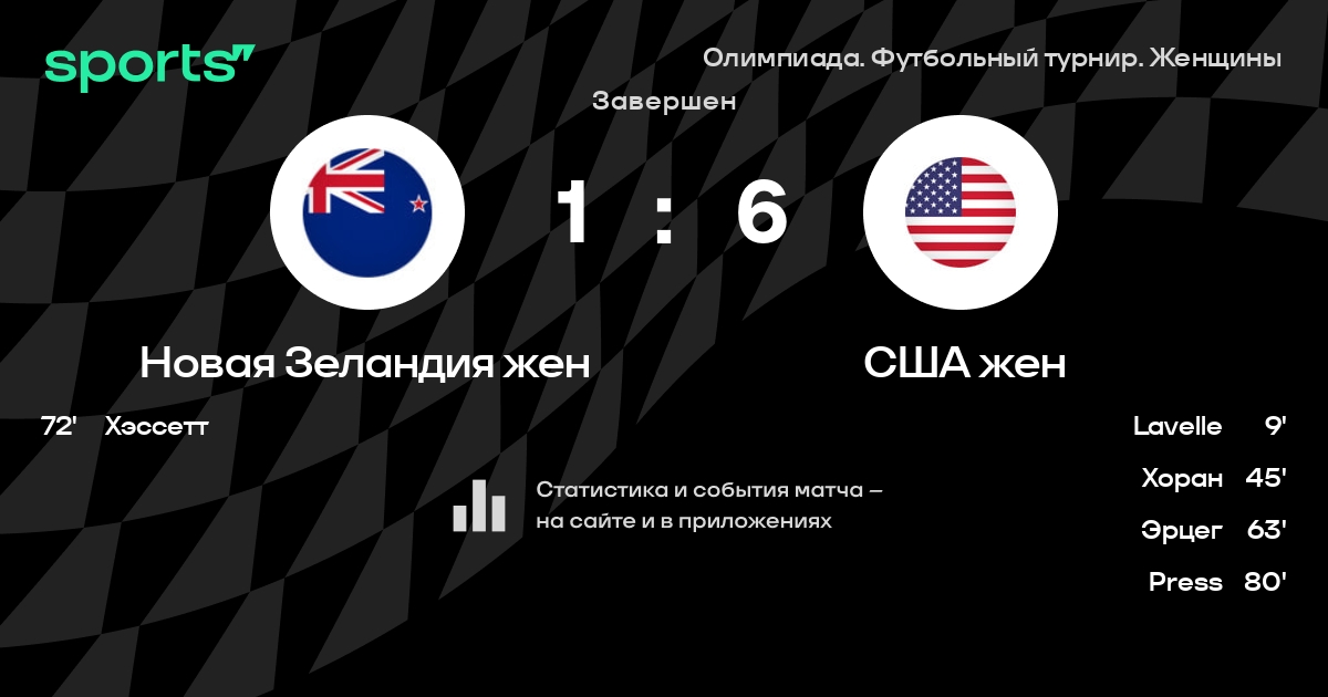 Новая Зеландия жен – США жен: США жен не пропускает в 3 последних матчах против этого соперника