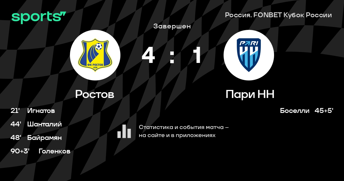 Результат прошлой игры в турнире «FONBET Кубок России»: Динамо Махачкала – Ростов 1:1 (4:2). В 3 последних матчах в турнире «FONBET Кубок России» Ростов обязательно забивает. Ростов пропускает в 5 последних матчах в турнире «FONBET Кубок России». В последних 5 играх Ростов забивает 3 голов. В последних 5 играх Ростов пропускает 2 голов.