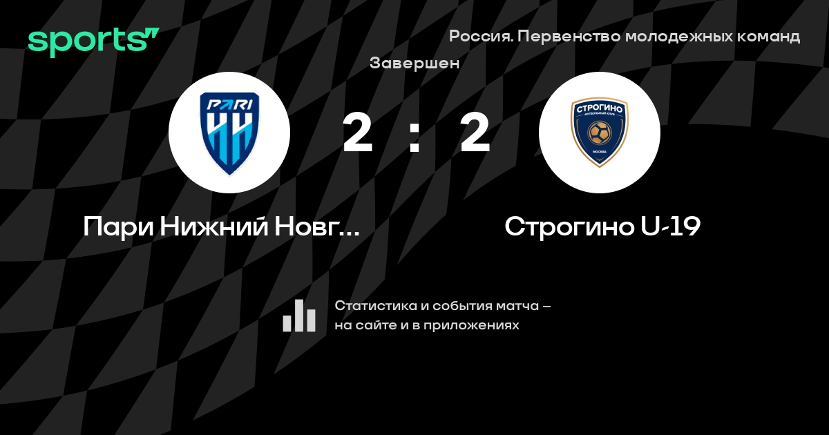 Результат прошлой игры в турнире «Первенство молодежных команд»: Крылья Советов U-19 – Пари Нижний Новгород U-19 6:0. После 27 туров Пари Нижний Новгород U-19 набирает 16 очков и занимает 9 место в турнире. Пари Нижний Новгород U-19 проигрывает в 4 последних матчах в рамках турнира «Первенство молодежных команд». Пари Нижний Новгород U-19 пропускает в 6 последних матчах в турнире «Первенство молодежных команд». В последних 5 играх Пари Нижний Новгород U-19 забивает 2 голов. В последних 5 играх Пари Нижний Новгород U-19 пропускает 19 голов.