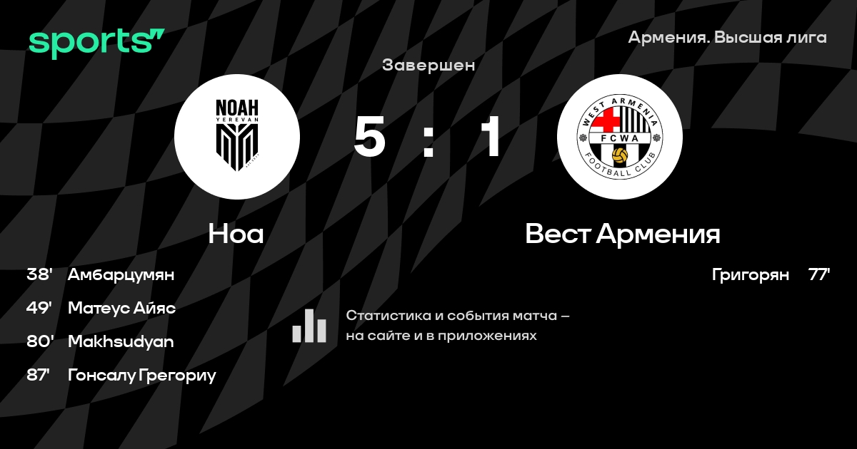 Ноа – Вест Армения: Ноа побеждает в 6 последних очных матчах