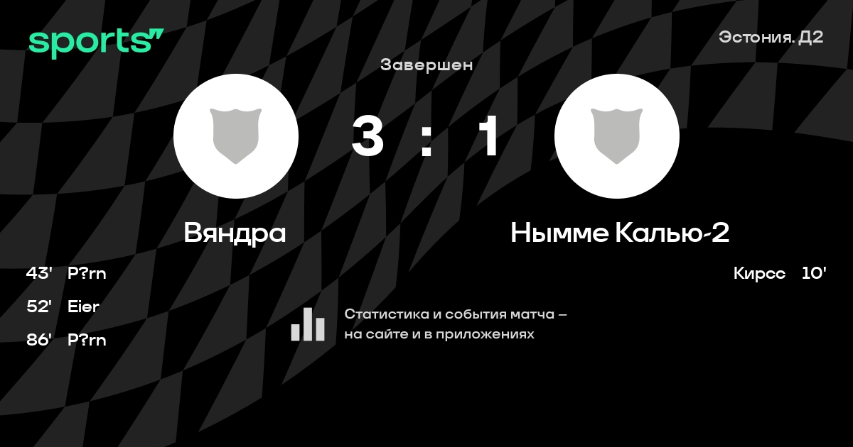 Naano - Ojala, Aavik, Anderson, Valma, Eier - Vesselov, Lepik, Mangusson - Pärn, JürgensteinЗапасные: Põldemaa, Pert, Korn