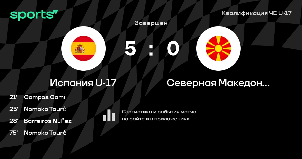 Испания U-17 – Северная Македония U-17: коэффициенты