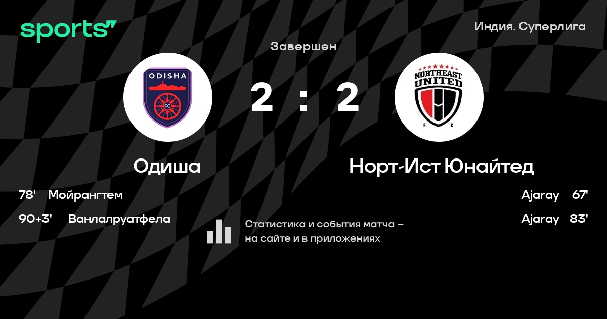 Результат прошлой игры в турнире «Суперлига»: Норт-Ист Юнайтед – Хайдарабад 4:1. После 18 туров Норт-Ист Юнайтед набирает 28 очков и занимает 4 место в турнире. Лучший бомбардир команды – A. Ajaray: он забил 16 в 18 матчах. Норт-Ист Юнайтед не проигрывает в 7 последних матчах в рамках турнира «Суперлига». В последних 5 играх Норт-Ист Юнайтед забивает 6 голов. В последних 5 играх Норт-Ист Юнайтед пропускает 3 голов.