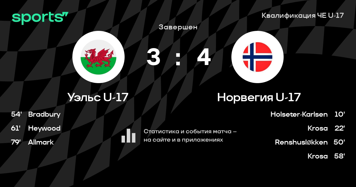Уэльс U-17 - Норвегия U-17: статистика матча