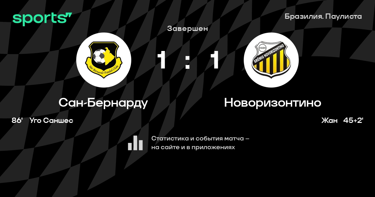 Результат прошлой игры в турнире «Лига Паулиста»: Интер Лимейра – Сан-Бернарду 1:2. После 6 туров Сан-Бернарду набирает 15 очков и занимает 1 место в турнире. Лучший бомбардир команды – Лукас Токантинс: он забил 3 в 22 матчах. Сан-Бернарду побеждает в 3 последних матчах в рамках турнира «Лига Паулиста». В 6 последних матчах в турнире «Лига Паулиста» Сан-Бернарду обязательно забивает. В последних 5 играх Сан-Бернарду забивает 10 голов. В последних 5 играх Сан-Бернарду пропускает 6 голов.
