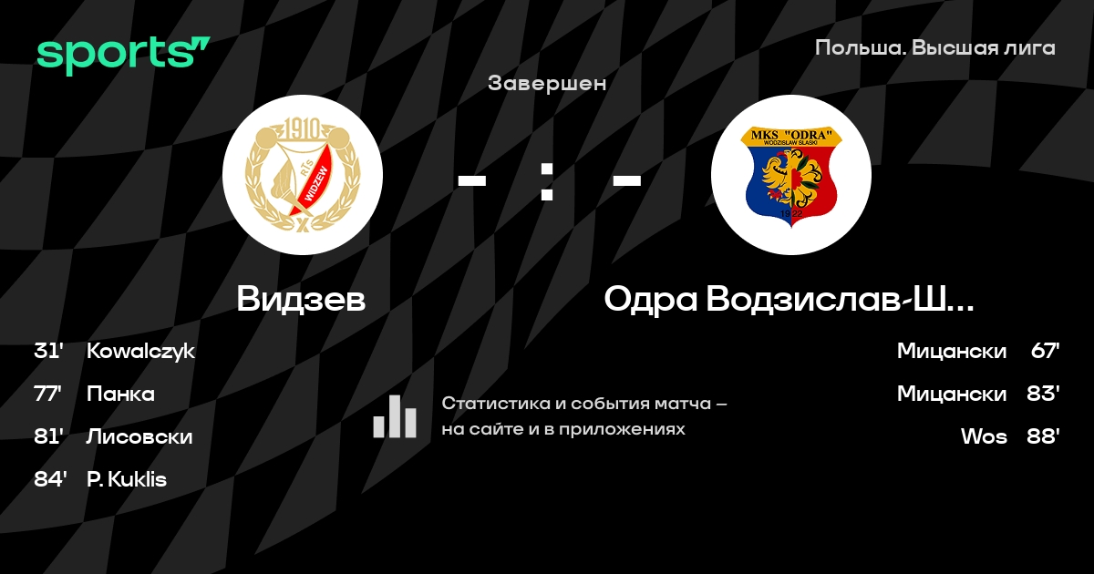 Видзев – Одра Водзислав-Шленски: коэффициенты