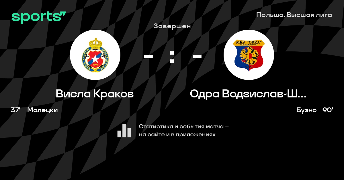 | 2 | Висла Краков | 30 | 19 | 5 | 6 | 48 | 20 | +28 | 62 | ||