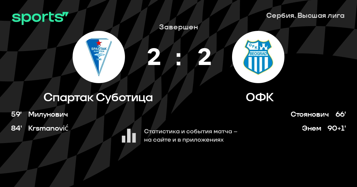 Спартак Суботица – ОФК: ОФК забивает в 6 последних матчах против этого соперника