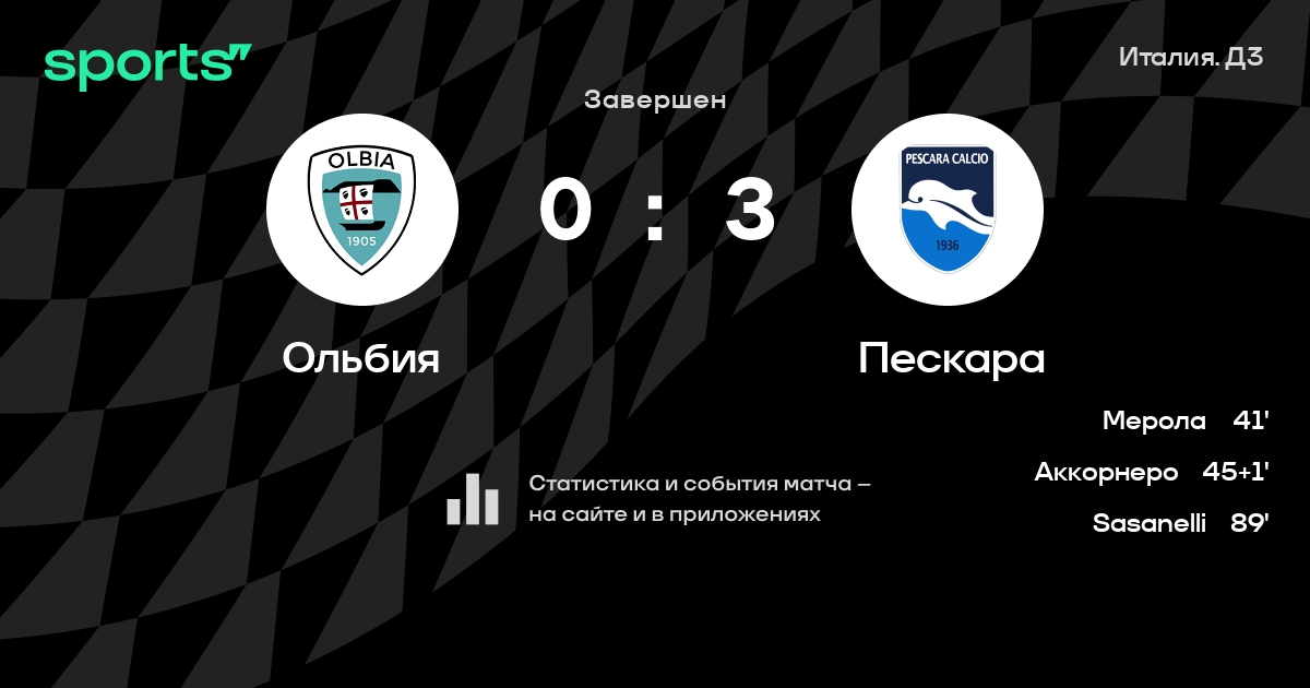 Ольбия – Пескара: Пескара забивает в 4 последних матчах против этого соперника
