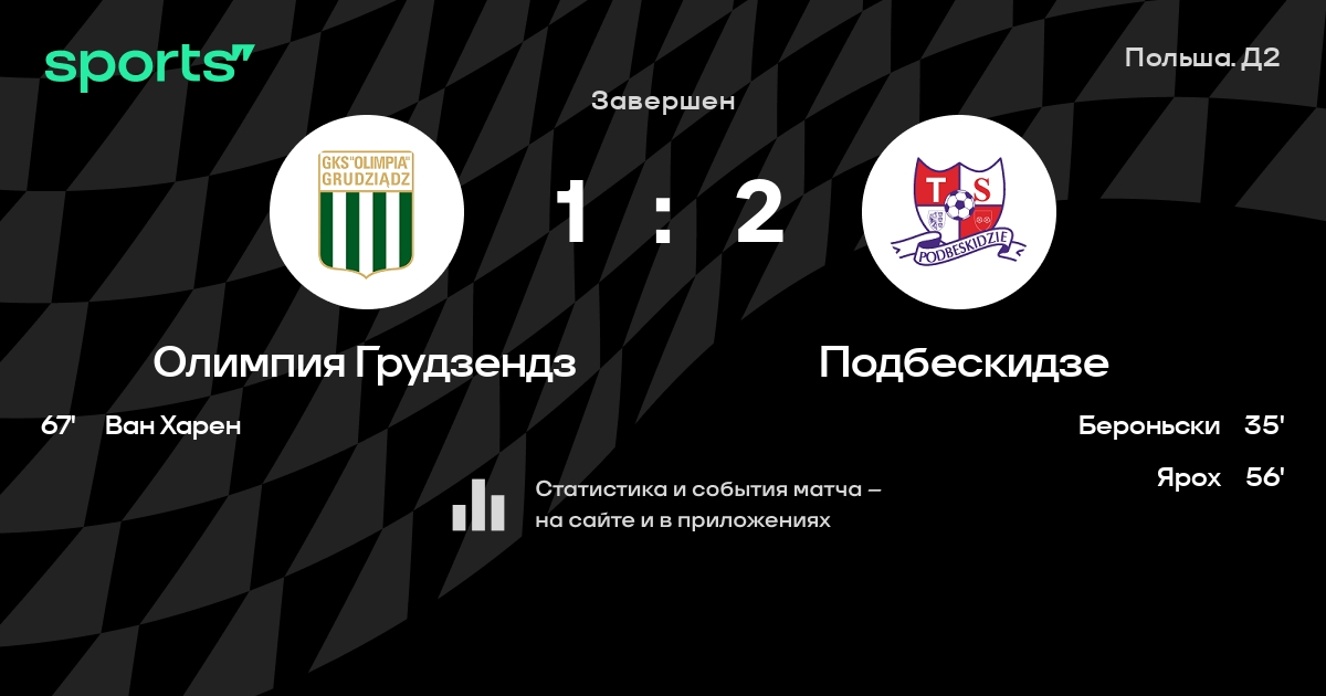 Олимпия Грудзендз – Подбескидзе: коэффициенты
