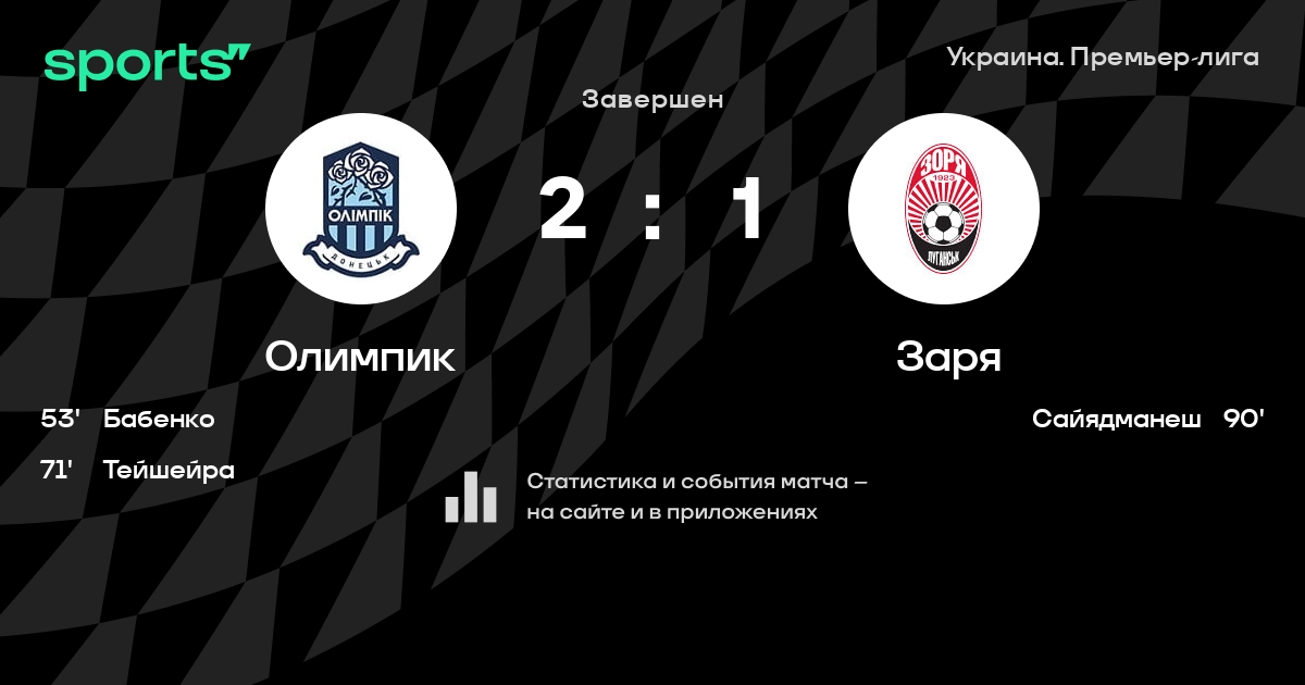 Олимпик – Заря: Заря не проигрывает в 6 последних матчах против этого соперника