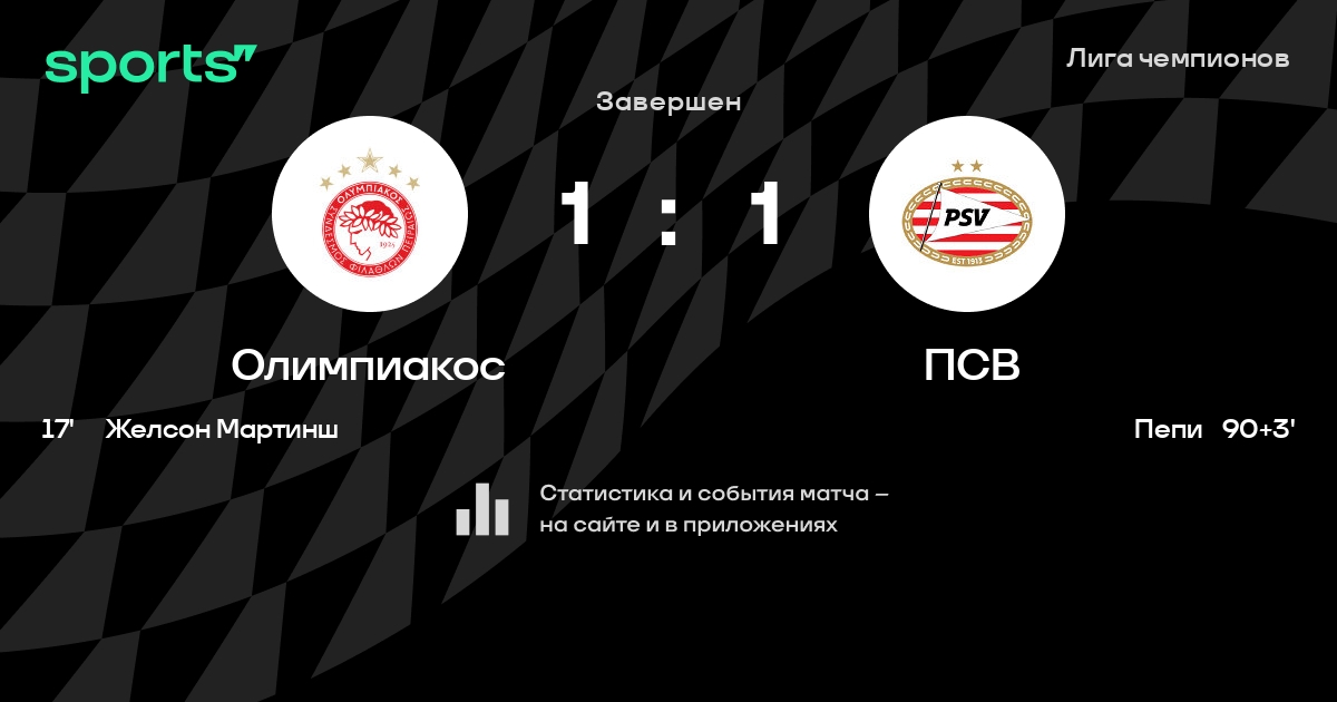 ЛЧ: шансы Олимпиакос – ПСВ победу в матче 4-го тура Лиги Чемпионов